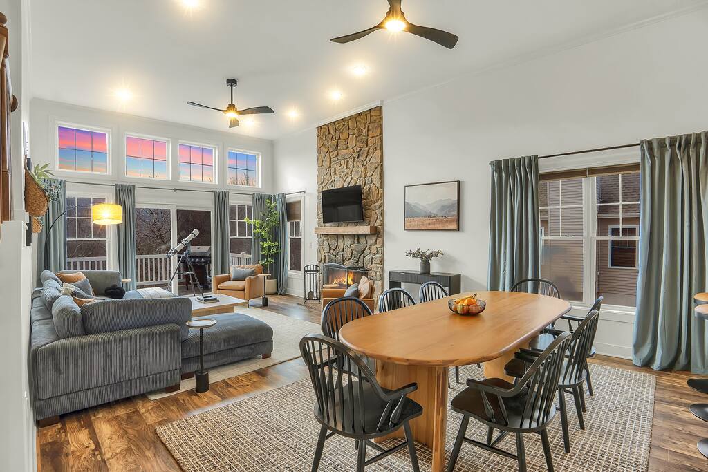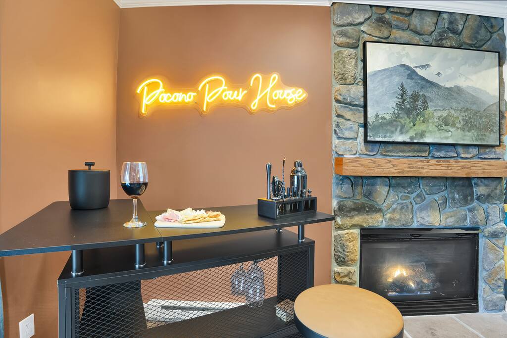 Enjoy the luxurious, recently renovated 'Silver Birch Summit' overlooking Camelback resort. Experience mountain & sunset views, relaxing in the hot tub or by the fire pit. Inside is packed with amenities for the whole family from the movie area with popcorn machine & PS5, to retro skeeball & the pool table alongside themed bar the "Poco Pour House". Sleeps 12 via 4 designer King bedrooms & Full bunk room. This is the perfect spot for your family/friends to enjoy all the area has to offer.
